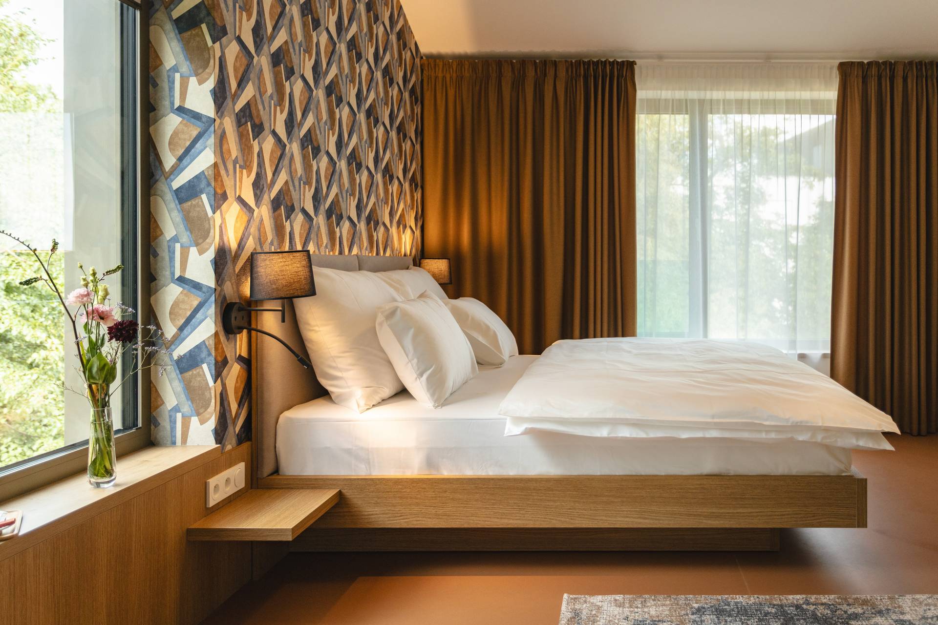 Pokoje v moderním designu se nachází ve druhém patře hotelu s výhledem do zahrady. Pokoj má 1 postel o rozměru 100×200 cm a jednu manželskou postel 180×200 cm, do pokoje lze přidat na vyžádání přistýlku pro dítě do 12 let. Ubytování s domácími mazlíčky není možné.